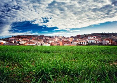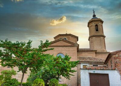 La espina dorsal de la comarca de la Comunidad de Calatayud está surcada por el río Jalón. Hasta su cauce llegan –como un auténtico sistema nervioso- otras corrientes desde las sierras. Por las aguas de esas riberas, disuelto en tumultos de turbias espumas, se va depositando el barro que ha servido para levantar las moradas de hombres y dioses. Barro convertido en ladrillos que, trazando figuras geométricas, juegan con el sol para tallar mil texturas en iglesias y alminares. Barro en forma de humildes adobas que sirvió para construir frescas casas donde cobijarse del sol. Barro transformado en vasijas para contener los mejores productos de la tierra: el vino que ya loara el romano-bilbilitano Marcial; el dorado aceite salido de los olivos que orlan laderas y montes; el agua fresca de las fuentes que atraviesa las entrañas de las sierras.