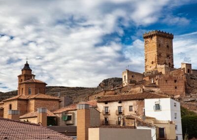 El carácter fronterizo de la Comunidad de Calatayud y su estratégica ubicación como lugar de paso ha dejado por sus valles y cañadas un reguero de castillos y fortalezas de diferentes épocas y estilos. Desde la austera belleza de las fortificaciones islámicas de Calatayud, Maluenda o Villafeliche, confundidas con los yesos grisáceos de los montes donde se asientan, hasta la grandiosidad medieval de castillos como el de Godojos, Cetina, Alhama, Monreal, o Villarroya.