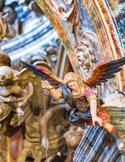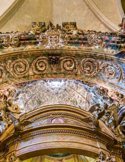Además, como piezas de gran interés encontramos el terno de San Blas y el antealtar que con él hace juego, obras del siglo XVI, realizada la primera por Domingo García, un magnífico bordador profesional que trabajó en Ateca durante esos años centrales de la centuria, y la segunda por el taller del maestro.