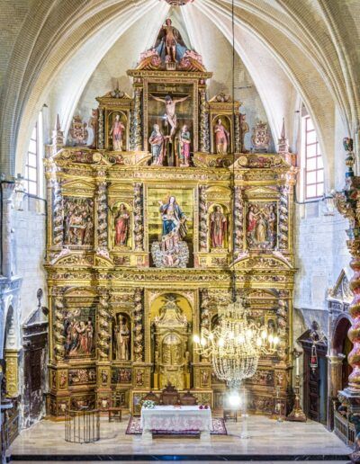 El retablo mayor está realizado a mediados del siglo XVII y se dedica a la Asunción de Nuestra Señora. Un bello y armónico conjunto de talla y pintura realizado entre los años 1657 y 1661. La delicada ejecución de este retablo, coordinada por Martín del Almunia, se pone de manifiesto en la policromía y estofado de sus tallas, algunas de las cuales poseenincrustaciones de cristal en los ojos, algo inusual en la imaginería de nuestra comarca.