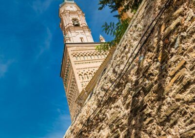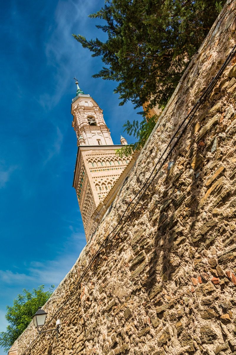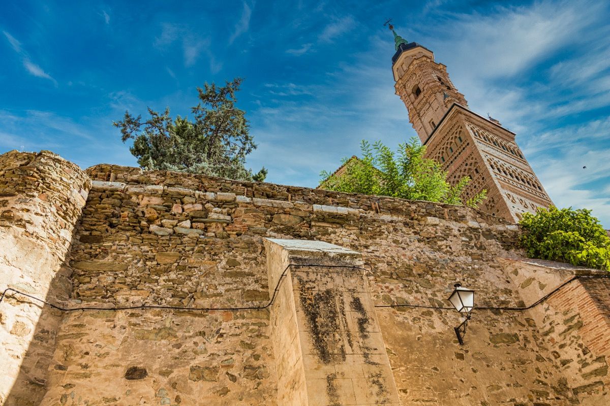 La torre de Santa María es de una composición singular y está catalogada como una de las obras mudéjares más antiguas y bellas de Aragón (siglo XIII); sin embargo, hay especialistas que defienden que su cuerpo bajo pudiera ser el alminar de la mezquita que aquí hubo y que en el siglo XIV sería sustituida por la actual parroquia.