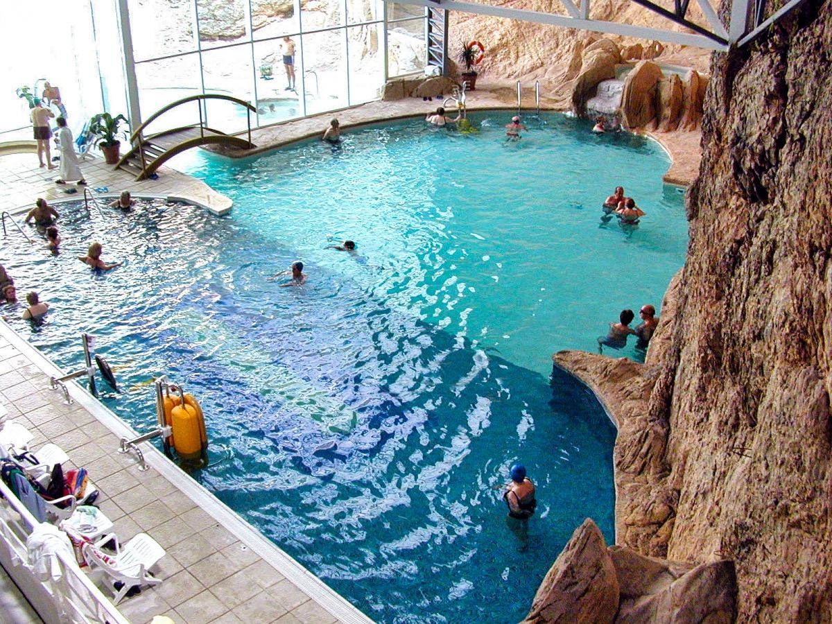 Entre sus diversas instalaciones, modernas y concebidas para el bienestar de los usuarios, hay una que no te dejará indiferente: la espectacular piscina termal de 250 m2 construida en el interior de una cueva natural.