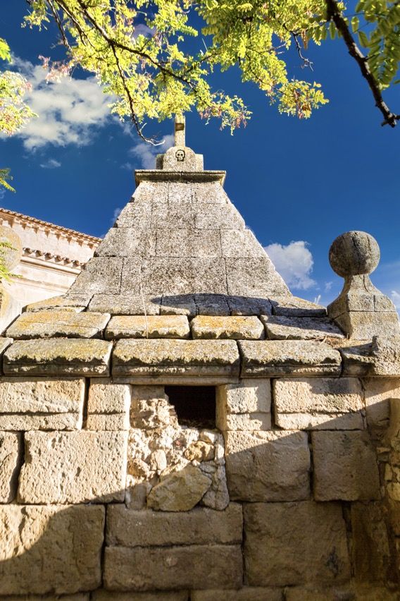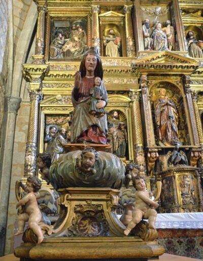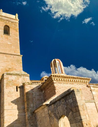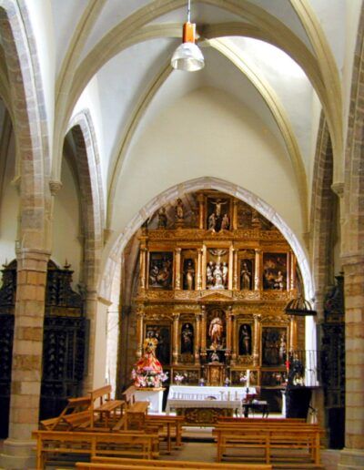 Su iglesia es gótica, de piedra, con una hermosa portada renacentista. Es una de las más destacadas de la comarca por su monumentalidad y belleza de líneas. Tiene una preciosa torre de sillería, de planta rectangular. Junto a la entrada encontramos una singularidad: se trata de “la Huesera”, un antiguo osario de piedra, cubierto con un chapitel. La plaza aparece presidida por una fuente de forja instalada en 1907 y de la cual los lugareños se sintieron orgullosos durante décadas.