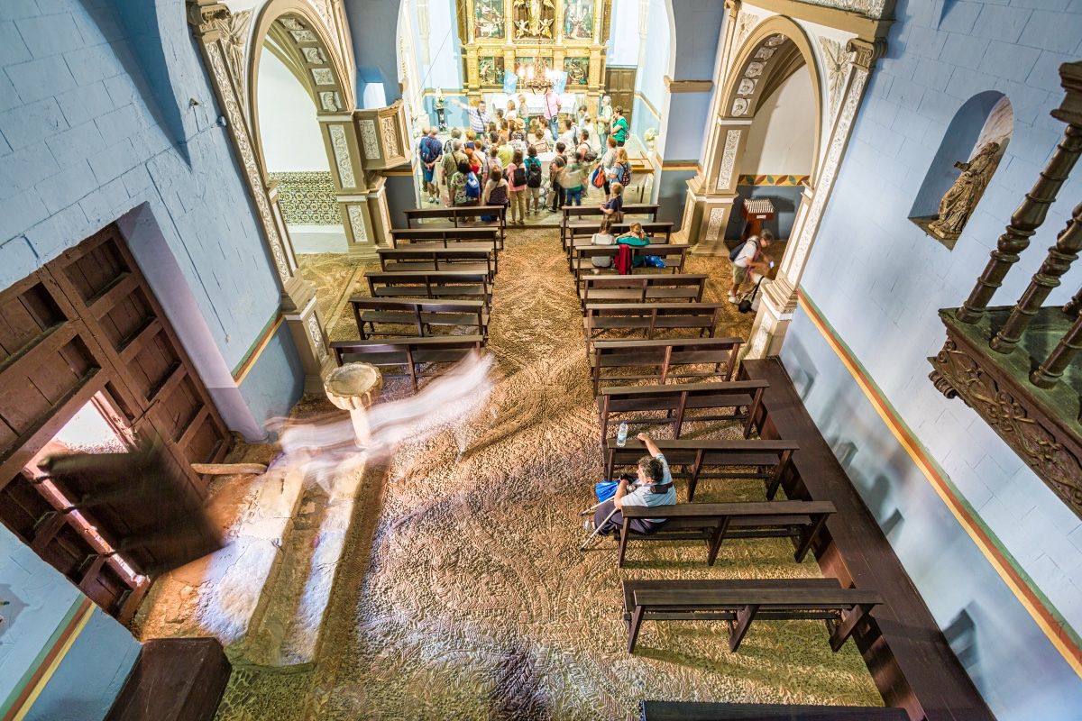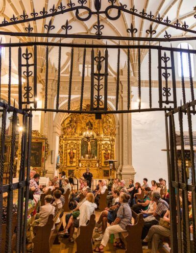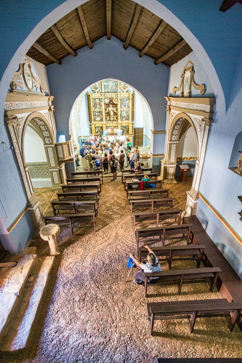 Su interior consta de una sola nave con dos capillas en los laterales, una dedicada a la Virgen del Rosario, que cuenta con un arrimadero de cerámica de finales del siglo XVI, y la otra a Santa Lucía. Tiene coro a los pies. Pero lo más maravilloso del templo es el suelo, realizado con canto rodado a modo de “chino cordobés”. La obra está firmada en una de sus paredes por el "empedrador", un tal Sebastián que realizó esta maravilla en 1619.