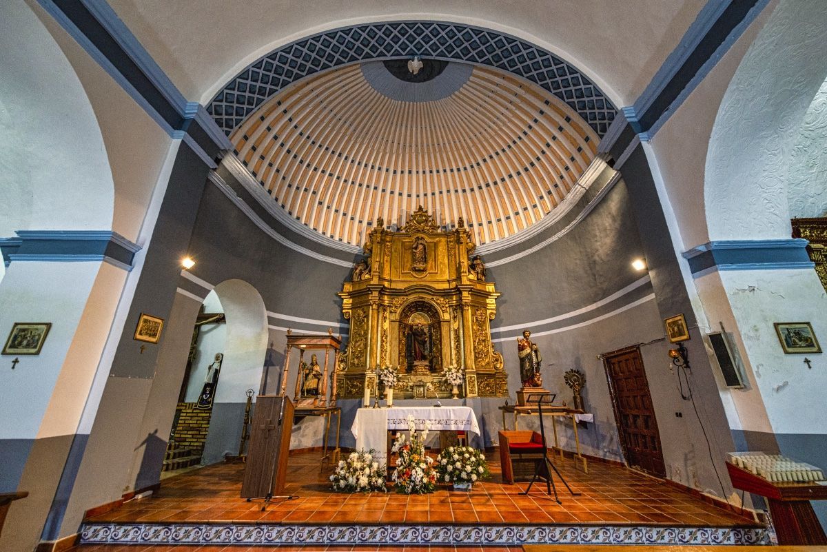 El edificio, de modesta factura, consta de una sola nave en la que se abren capillas entre los contrafuertes, comunicadas entre sí. Se cubre con bóveda de lunetos, a excepción de la exedra del ábside, que lo hace con bóveda de cuarto y esfera avenerada. La capilla de la Purísima es la única excepción, ya que se cierra con bóveda de media naranja en la que se conservan yeserías geométricas muy al gusto barroco con reminiscencias mudéjares.