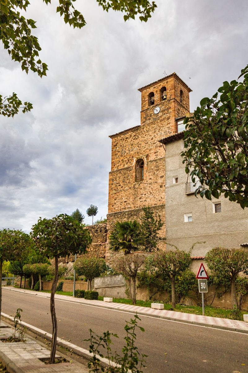La Iglesia parroquial está dedicada a El Salvador y se levanta sobre un espolón rocoso desde el que se domina el caserío. Construida en mampostería, ladrillo y piedra de sillería en las esquinas, al interior se accede por una sobria portada renacentista, labrada en piedra, con una puerta en la que pende un espectacular llamador fálico.