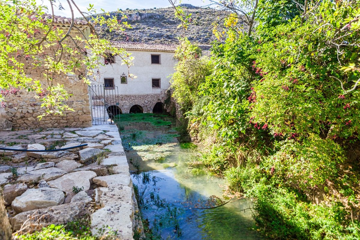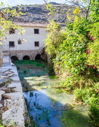 La localidad de Cimballa se asentó junto al cauce del rio Piedra, en un paraje de contrastes, con impresionantes paredes calizas, arboledas, praderas naturales y el río Piedra, alimentado por los “Ojos del Piedra”. En ese entorno destaca el molino con su represa y su manantial. El edificio, completamente restaurado, posee un gran atractivo por la belleza del paraje, la claridad de sus aguas y la sombra de sus choperas. Siguiendo la senda marcada junto al molino se llega hasta un mirador desde el que se tiene una excepcional vista de los “Ojos” y del casco urbano de Cimballa.