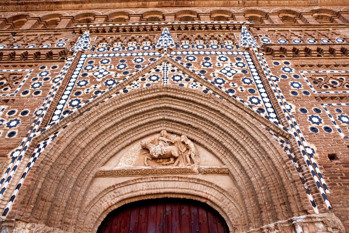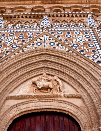 La fecha de construcciĂ³n nos remonta a los albores del siglo XV, Ă©poca de la construcciĂ³n de la fabulosa fachada en la que la decoraciĂ³n de ladrillo resaltado, junto con cerĂ¡mica vidriada en blanco y un azul casi negro, conforman un entramado de cruces de mĂºltiples brazos. Se forman rombos, fajas de esquinillas y arcos mixtilĂneos sin entrecruzar soportados por fustes de ladrillos alternados con otros cerĂ¡micos, complementĂ¡ndose estos adornos de ladrillo con azulejerĂa de estrellas. Junto al muro mudĂ©jar de la Seo de Zaragoza, la fachada de San MartĂn esta considerada la mejor del mudĂ©jar aragonĂ©s.Â