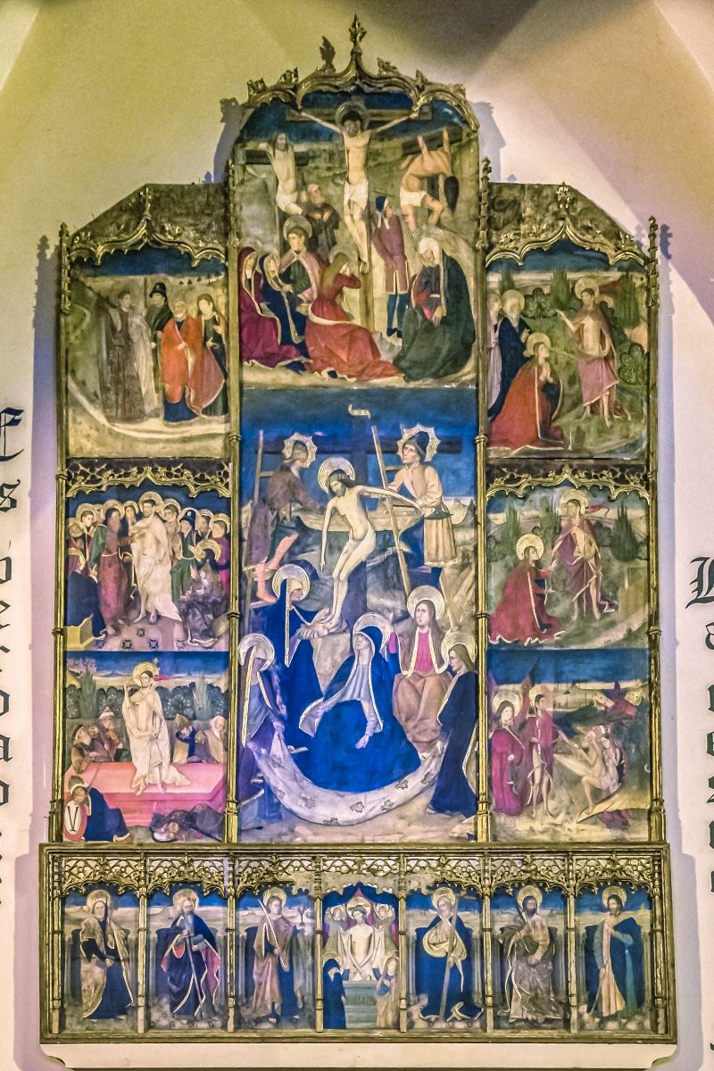En el presbiterio se aloja el retablo del descendimiento. Consta de quince tablas que narran escenas de la muerte y resurrecciĂ³n de Cristo. Atribuido al taller de Pedro de Aranda, es una obra magistral realizada a partir de la segunda mitad del siglo XV. Este retablo se encontraba en una ermita de la localidad y fue trasladado a la iglesia tras la finalizaciĂ³n de las obras de restauraciĂ³n de la misma.
