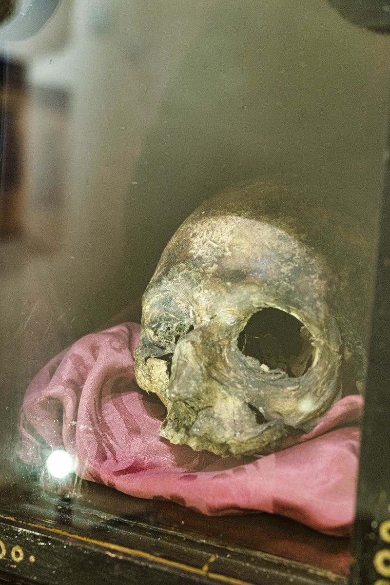 La capilla de Santa Ana de Sabiñán acoge desde hace algún tiempo una pequeña muestra del arte sacro de la parroquia. En los últimos tiempos se ha sumado a la colección el cráneo del Papa Luna.