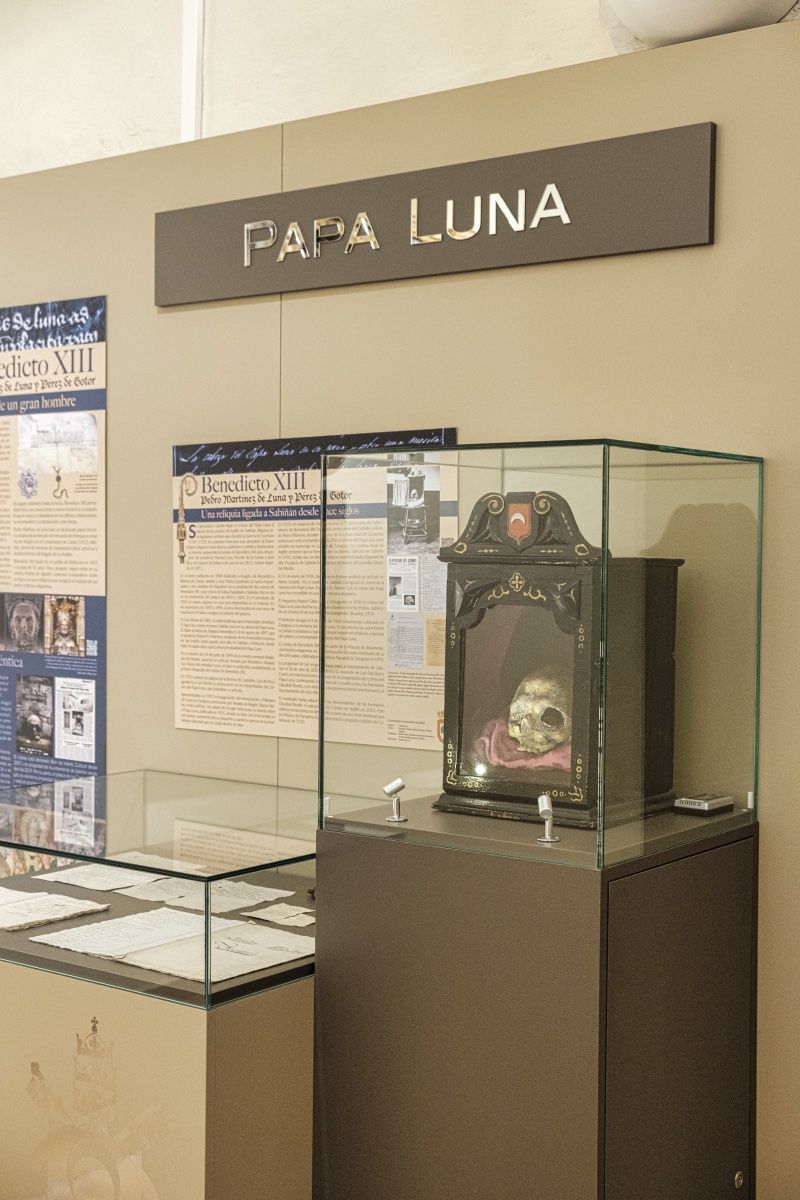 La reliquia del cráneo del Papa Luna está ligada a Sabiñán desde hace siglos. Se desconoce exactamente cuándo llegó el cráneo del Papa Luna al palacio de los condes de Argillo de esta villa. Algunos investigadores señalan que durante la Guerra de Sucesión (1701-1713), los soldados franceses que apoyaban al futuro Felipe V, llegaron hasta Illueca, asaltaron el castillo y destrozaron su interior, golpeando la momia de Benedicto XIII para despojarle del pontifical. Sea como fuere, el cráneo llevaba varios siglos en el palacio hasta su robo.