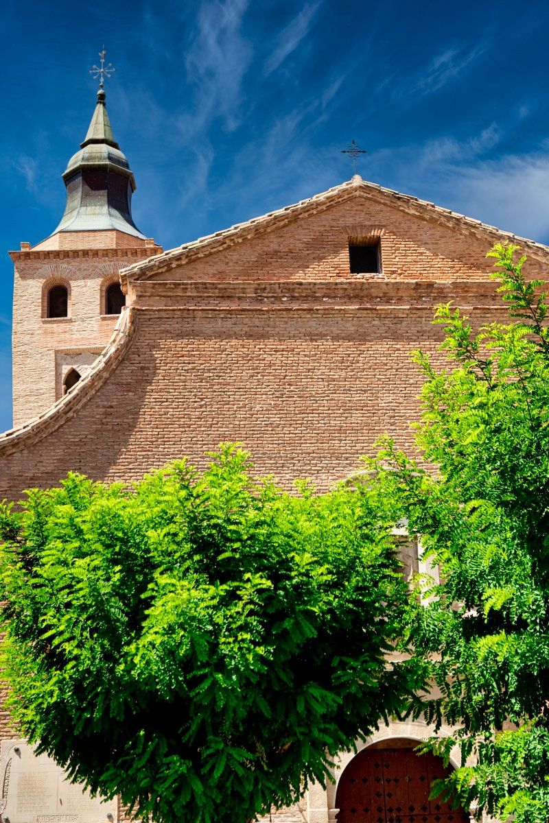 La construcción del templo data de los siglos XIV y XV pero el edificio fue profundamente transformado en época barroca. Del edificio original, de estilo mudéjar, tan solo se conservan la torre —datada en torno a 1400— y parte del ábside poligonal. En el cuerpo levantado en la primera época se concentra toda la decoración, brindando un verdadero catálogo de los motivos en ladrillo resaltado usados en las obras mudéjares: frisos de esquinillas, arcos entrecruzados, rombos con cruces en su interior y lazos entre los que se alojan discos o platos de cerámica vidriada, que han hecho pensar en un posible mecenazgo por parte del Papa Benedicto XIII..