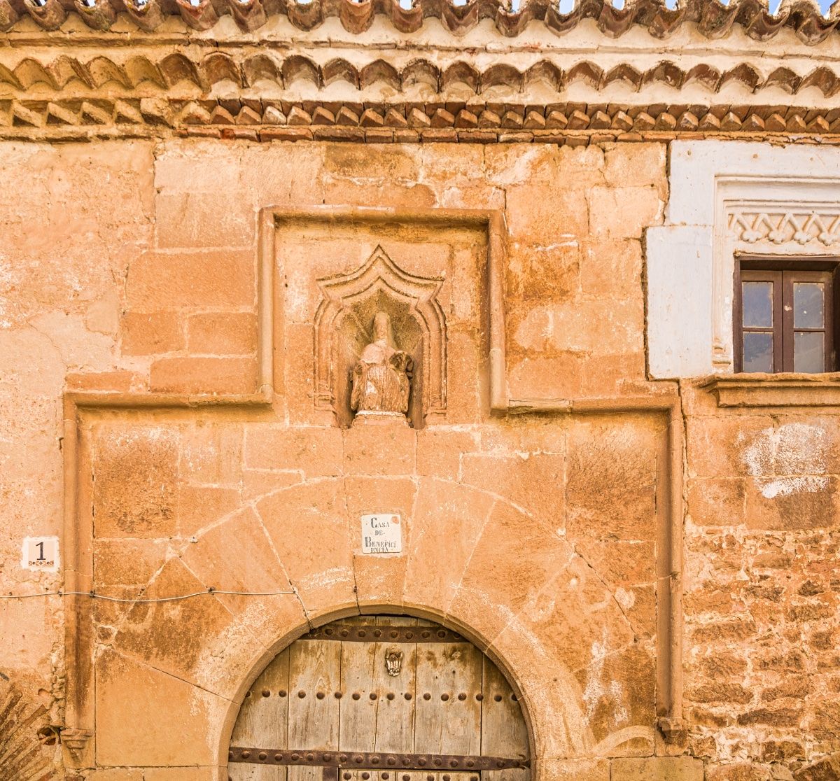 Frente al templo se levanta un elemento arquitectónico único, superviviente en cuanto a estructura, de la herencia oriental en estas tierras: el patio de la casa-hospital de San Millán. Es el edificio más significativo del pueblo y sin duda alguna uno de los más singulares de la comarca.
