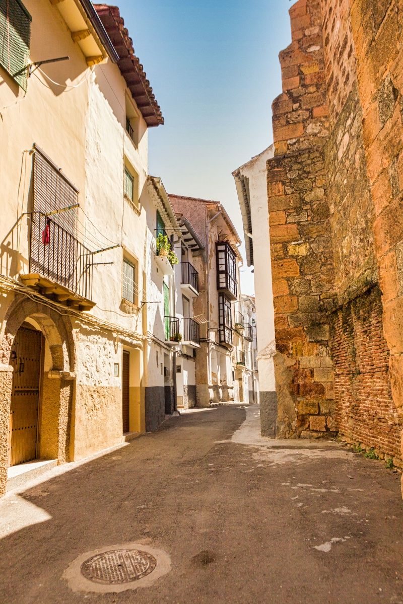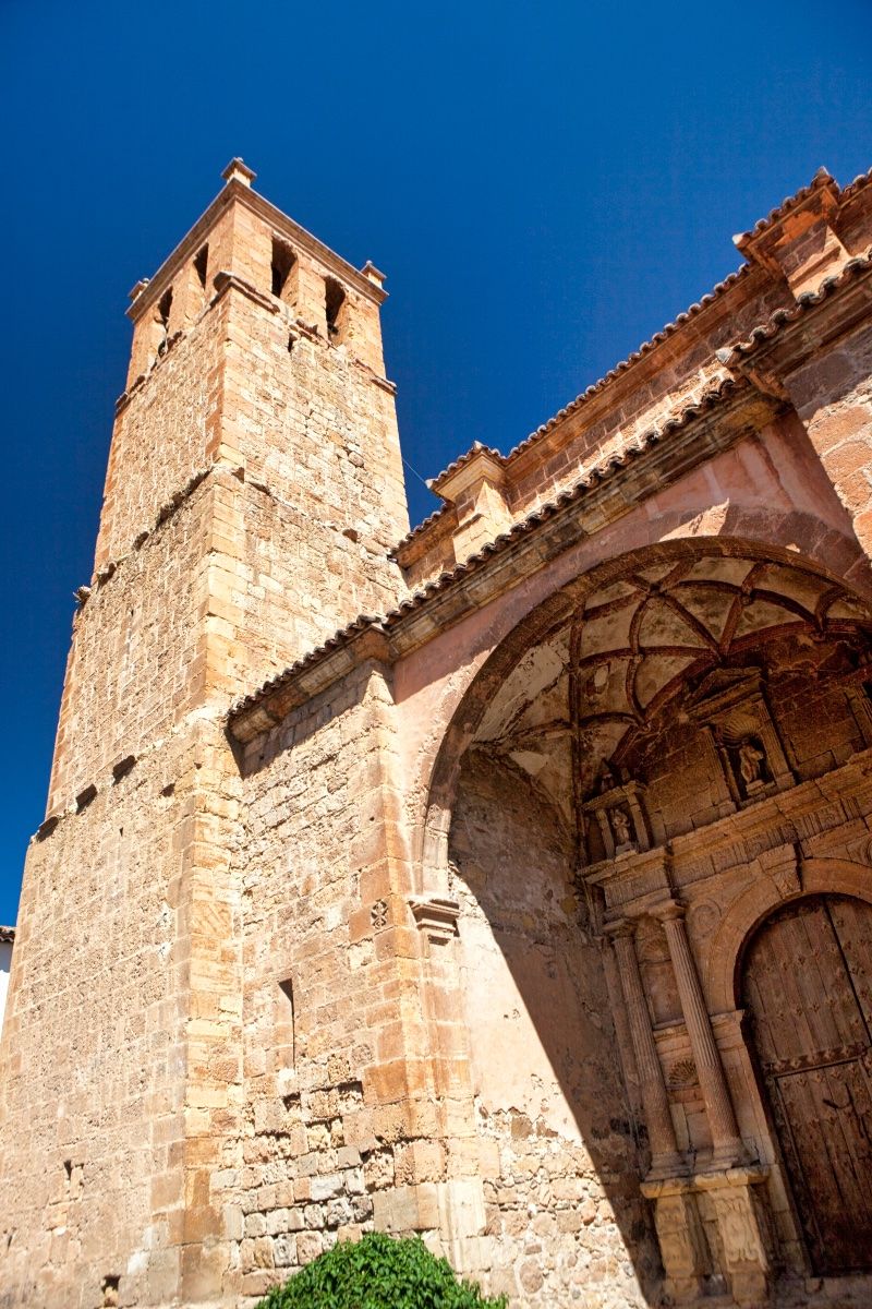 Frente a la Casa Consistorial se levanta la torre-puerta de la antigua muralla, datada en el siglo XV, a la que se accede por un puente que salva el río Manubles. La llamada Cruz del Arenal marca el punto donde, según la tradición, fueron martirizados los Santos Félix y Régula, patronos de la localidad y que tienen su capilla en la Iglesia de Nuestra Sra. del Hortal, un templo gótico finalizado hacia el año 1500, cuya portada es quizá una de las más hermosas y elegantes de este estilo en nuestras tierras.