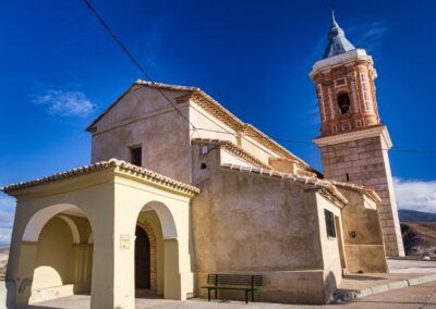 En las cimas de los cerros que rodean la población vemos varios palomares, derruidos en parte. Dos ermitas, también en ruinas, Santa Ana La Vieja y Santa Ana la Nueva, se levantan en sendos cerros, una encima de la otra, y dominan todo un espacio blanco de montecillos ondulados que rodean el casco urbano. Las vistas desde arriba permiten admirar este hermoso valle y la Sierra de Vicor que hace de telón de fondo.