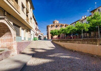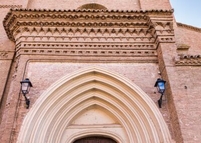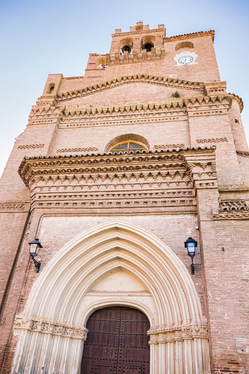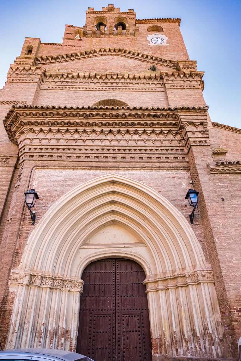 En la plaza del Ayuntamiento se sitúa la iglesia de San Pedro Apóstol. El templo primitivo fue construido en el último tercio del siglo XV. En el XVII sufre una reforma importante, construyéndose una segunda nave por la unión de las capillas laterales del lado de la epístola, a la que a su vez se le dota de cuatro capillas. El edificio resultante es muy atractivo. Consta de nave única de dos tramos, con capillas entre los contrafuertes y ábside poligonal. La cubierta se soluciona con bóvedas de crucería simple. Al exterior se abre una portada gótica con una puerta abocinada de arcos ojivales, un elegante conjunto recuadrado en resalte con un alfiz y protegida por un alero de ladrillo. El hastial y parte del perímetro exterior está decorado con bandas de esquinillas simples al tresbolillo, restos de la primera fabrica mudéjar.